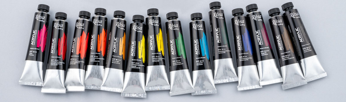 Професійний художні акрилові фарби ROSA Gallery розроблені висококваліфікованими технологами з урахуванням вимог та рекомендацій професійних художників України. Фарби виготовлені з високоякісних високоякісних пігментів високого ступеня перетертості на основі сучасних акрилових дисперсій.